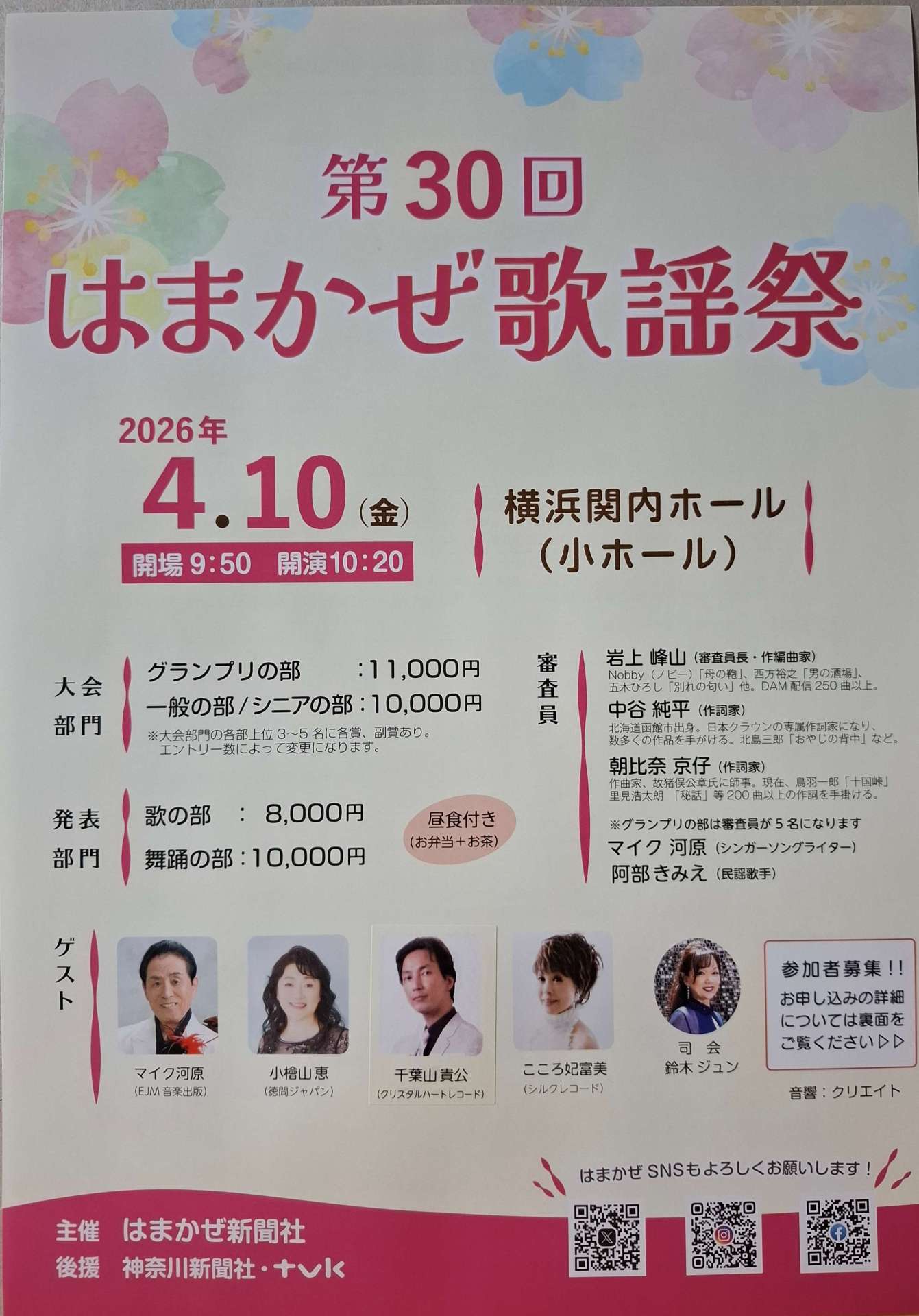 4月10日 「第30回 はまかぜ歌謡祭」 横浜市関内「関内ホール」で。
