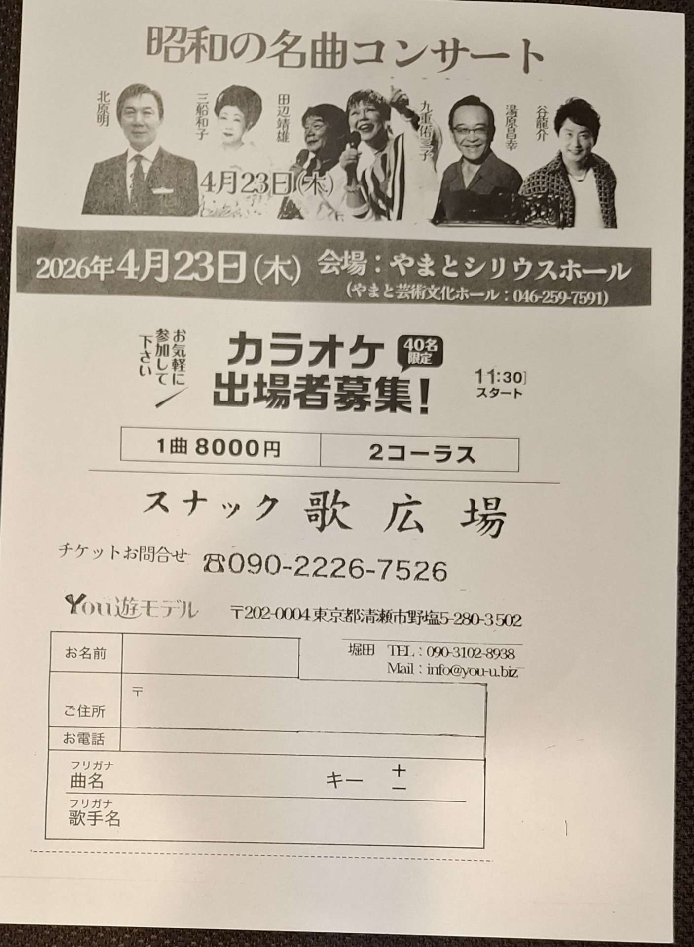 横浜のオフィス道は歌謡祭への出演依頼も承っております